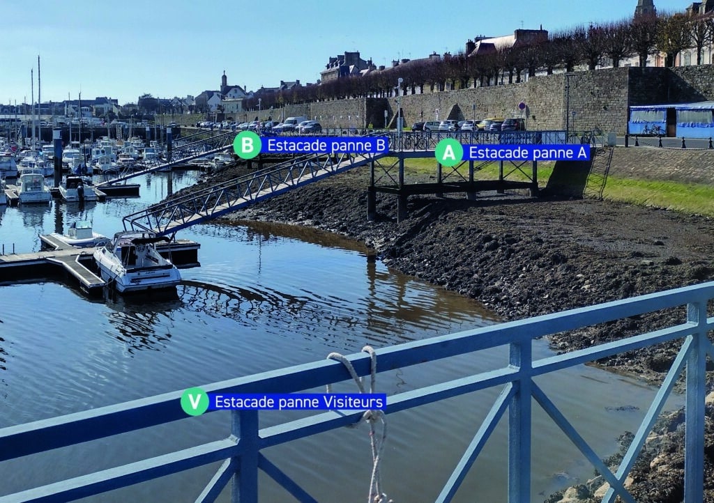sablage et remise en peinture des estacades des pannes A, B et Visiteurs. Pendant cette période, l’accès aux pannes se fera grâce à des pontons flottants provisoires les reliant à la panne Pêche.