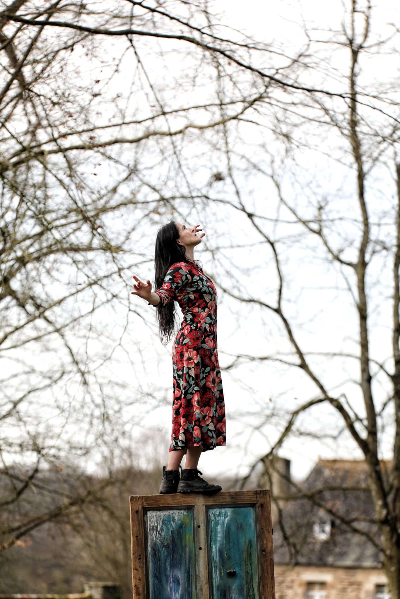 Deux portes, deux manières d’habiter le vertige. Il bricole du fragile et invente des petites fêtes magnifiques. Elle danse ce qui hésite, ce qui brûle. Objets, corps et mots se métamorphosent, créant des bulles de fête et de fragilité.